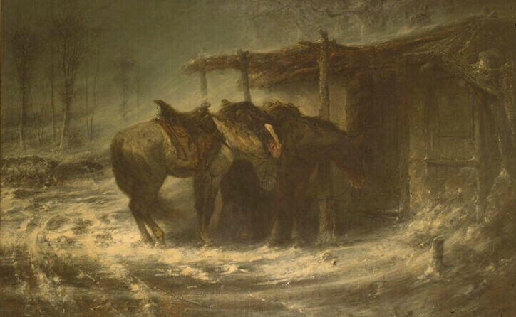 Ses deux thèmes principaux concernent deux pays totalement différents, tant par le climat que par les modes de vie : chevaux et neige en Russie et cavaliers arabes. Il pressentit le succès du genre orientaliste qu'il déclina à la manière de Fromentin. Il produisit aussi ces scènes de neige réalisées en atelier à Paris, entre 1862 et 1870, à partir des souvenirs et des notes rassemblées dans ses voyages en Valachie à la suite de la guerre de Crimée en 1855. Le peintre a été séduit par des chevaux attendant sous la neige à la porte d'une auberge; il a répété le sujet à plusieurs reprises sous des titres variés