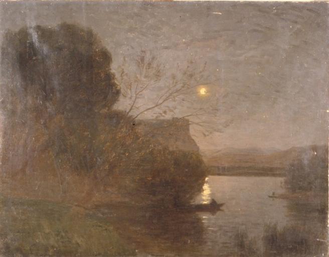 paysage (clair de lune, Dordogne, barque, Beynac)