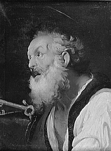 figure biblique (saint Pierre, apôtre, en buste, de trois-quarts, vieux, clé)