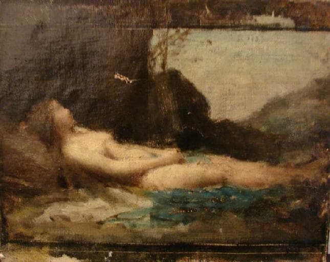 réalisé par l'artiste lorsqu'il était pensionnaire à la Villa Médicis de 1859 à 1864 ; Voir aussi : Henner, Madeleine dans le désert (Salon de 1874, Toulouse, musée des Augustins)