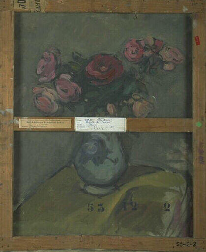 Au dos du tableau, un bouquet de fleurs dans un vase