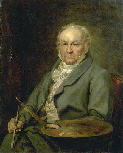 portrait (Goya y Lucientes Francisco de, homme, à mi-corps, assis, de face, peintre, palette, pinceau)