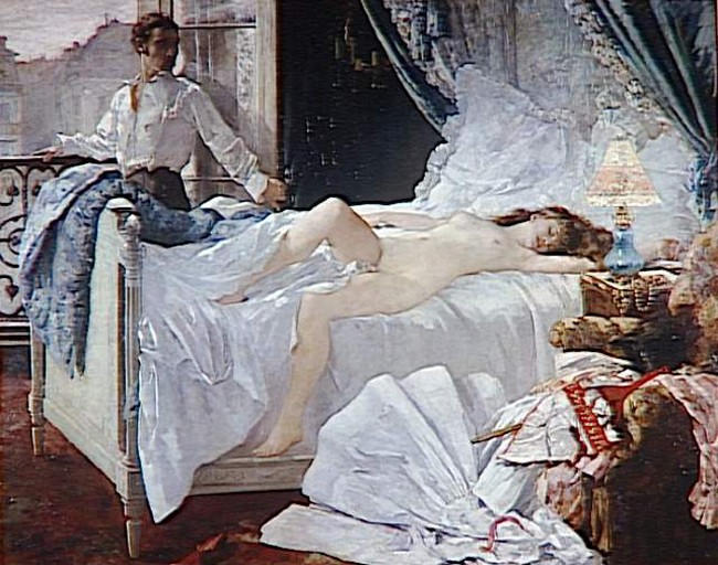 présenté au salon de 1878, retiré sous prétexte d'immoralité, puis exposé dans un magasin de la Chaussée d'Antin ; oeuvre en rapport au musée : Rolla (Bx 2001.3.1)