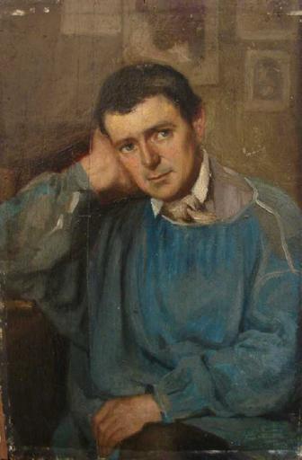 portrait (Henner Séraphin, à mi-corps, de face, assis, accoudé : meuble, tête : penché, vêtement : paysan)