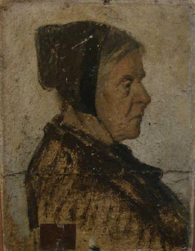portrait (Henner Madeleine, femme, en buste, de profil, bonnet : paysan)