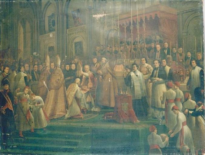 scène historique (sacre : évêque, Trélissac Mgr de, Cheverus Jean Louis de, Lefebvre de Cheverus Jean, homme, cardinal, mitre, foule, intérieur: Bordeaux, église)