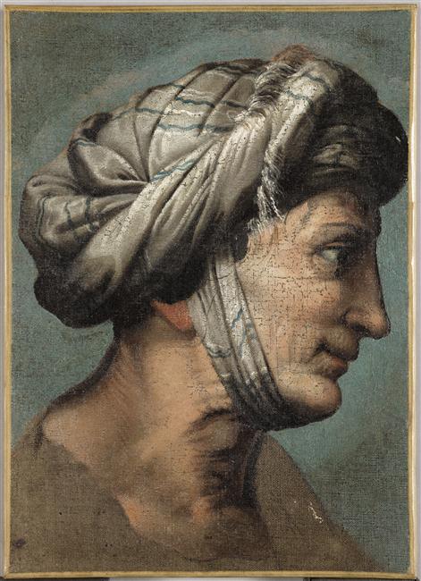copie ancienne de la tête de la sainte Elisabeth de la visitation conservée à Madrid au Prado (De Vecchi 152)