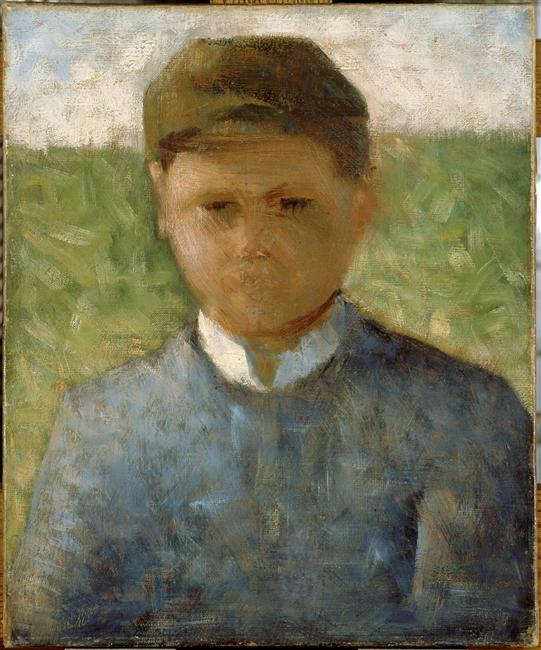 analogie : petit paysan assis dans un pré, vers 1882 (Glasgow, art gallery)