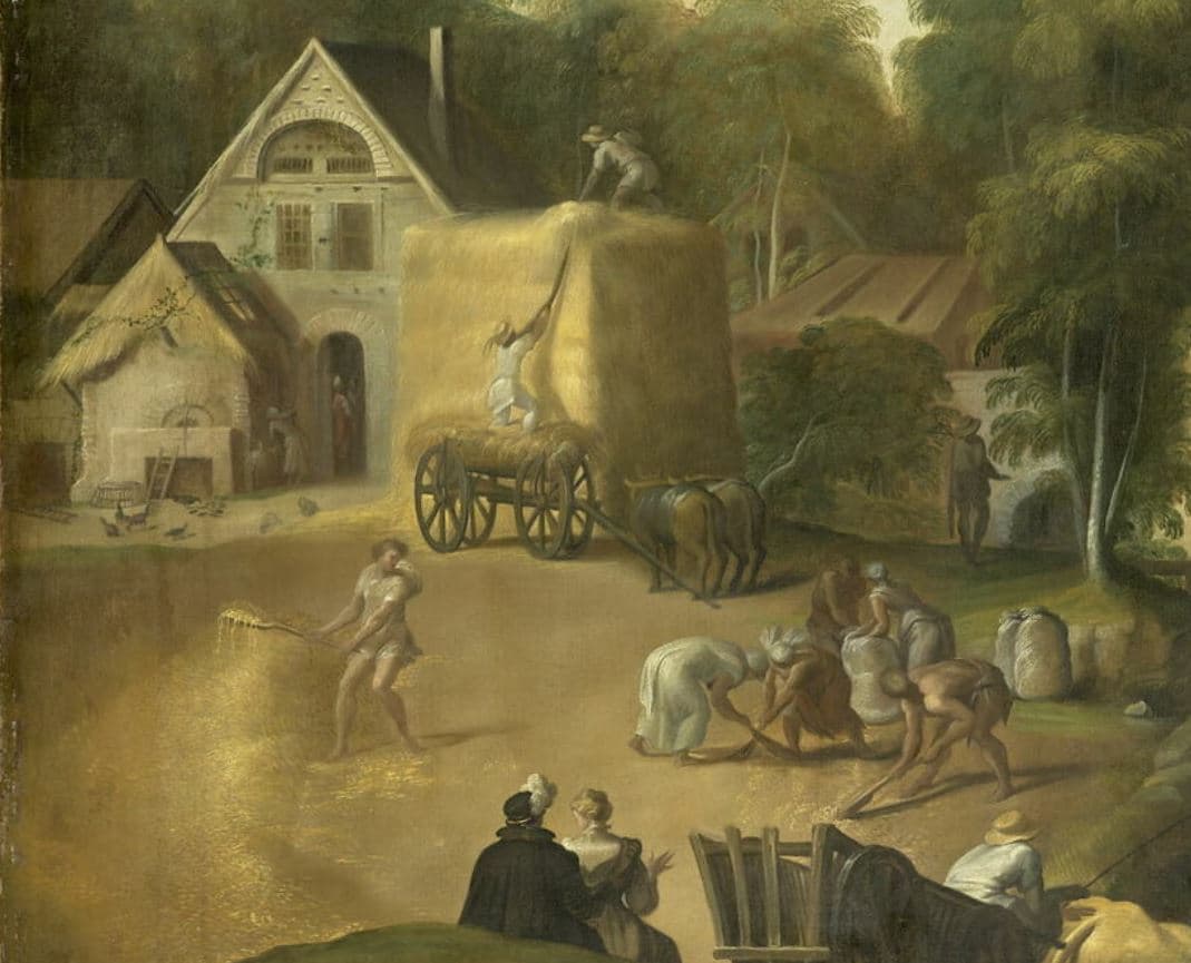 Un paysage aux batteurs de blé, conservé au musée national du château de Versailles est très proche de celui-ci