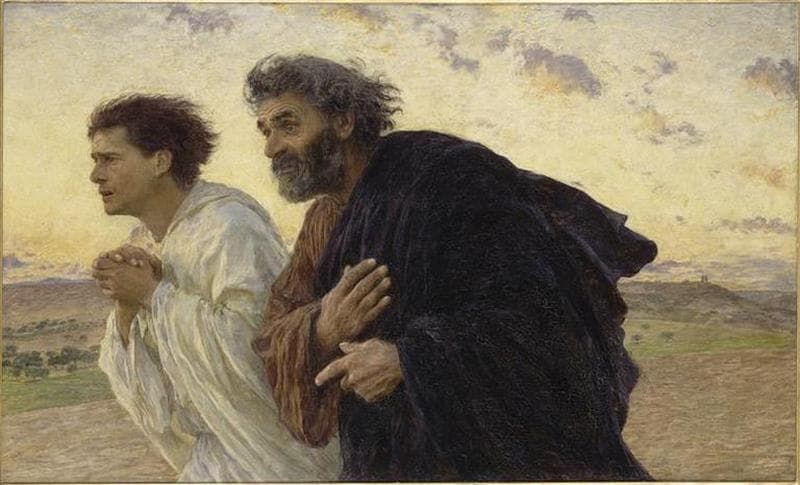 LES DISCIPLES PIERRE ET JEAN COURANT AU SEPULCRE LE MATIN DE LA RESURRECTION