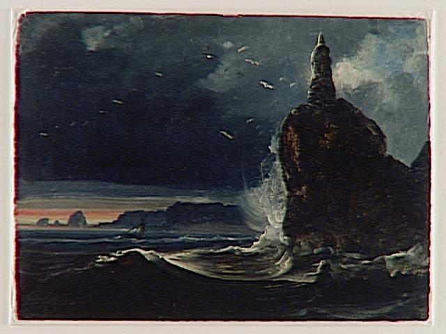 commandé par Louis-Philippe pour commémorer son voyage de 1795 en Laponie;appartient à une série de 31 esquisses, 26 sont conservées au Louvre, 7 sont perdues, (inv 997, 998, 1010, 1011, 1017, 1019, 1027) , 2 tableaux achevés de l'artiste représentant également des sites nordiques, et sans doute en rapport avec cette commande, sont déposés au musée du Tréport depuis 1896 (inv 993 : vue du cap nord, et inv 994 : vue de Drontheim);numéros d'inventaire des autres éléments : inv 995, inv 996, inv 999 à inv 1009, inv 1012 à inv 1016, inv 1018, inv 1020 inv 1021, inv 1023 à inv 1026