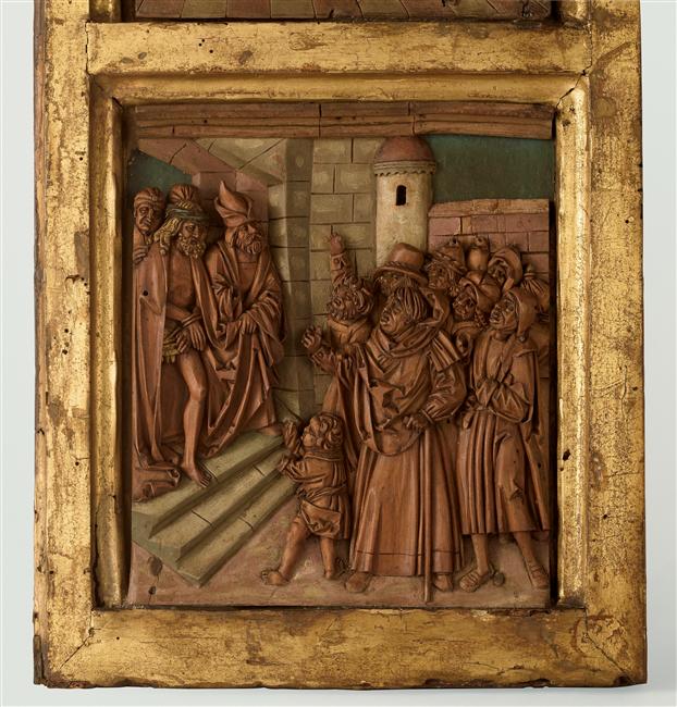 scène biblique (Crucifixion, sainte Madeleine, Les larrons) ; scène biblique (Dérision du Christ) ; scène biblique (Jésus présenté au peuple, vieux) ; scène biblique (Flagellation du Christ) ; scène biblique (Jardin des Oliviers)