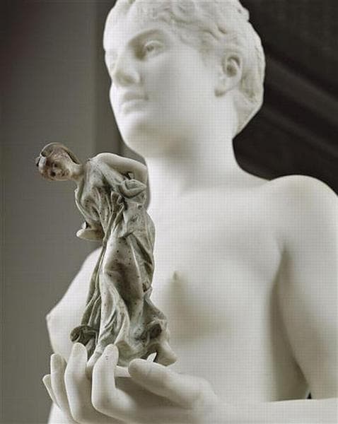 réductions en bronze par Siot-Decauville (H. 0, 75m) ; exemplaire grandeur nature de l'original, provenant du monument de Gérôme inauguré en 1913 et démembré vers 1930, à Vesoul ; Tanagra apparaît dans plusieurs peintures de Gérôme ; exemplaires en plâtre et marbre polychrome de la Sanseuse au cerceau ; éditions en bronze par Siot-Decauville, en biscuit par Sèvres ; version un peu différente (drapé, position de la tête) éditée en bronze par Siot-Decauville