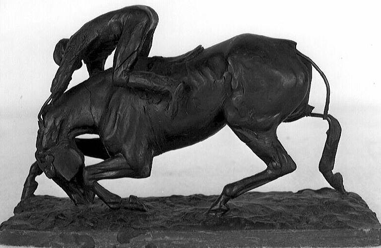 sur socle ; armature de fer ; patte arrière du cheval