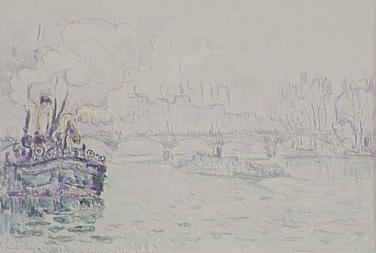 S.D.T.B.G. au crayon : Paul Signac / 1913 - Le cargo au port du Louvre
