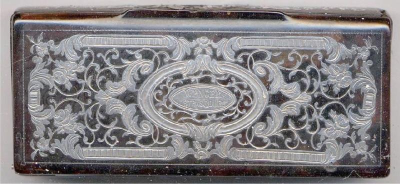 inscription : 'WENGER Strasbourg' gravée au centre du couvercle
