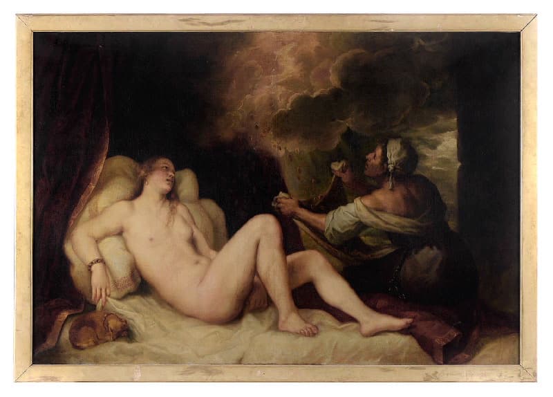 Copie ancienne du tableau du Titien conservé au Prado et exécuté vers 1553/54 pour Philippe II d'Espagne.
