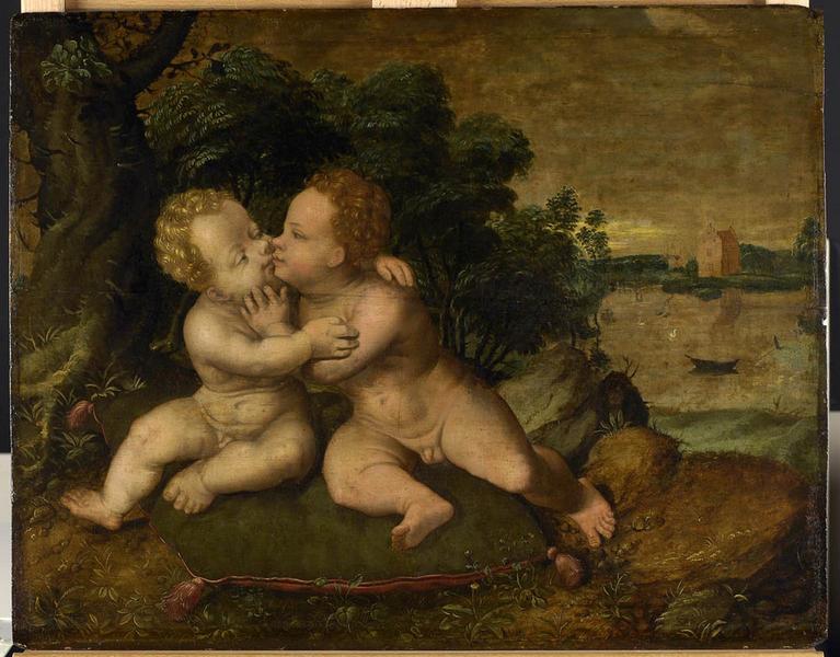 scène biblique (Enfant Jésus, saint Jean-Baptiste, enfant, nu, baiser : bouche)