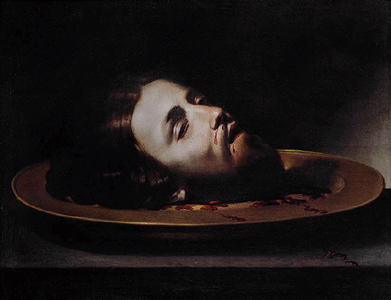 figure biblique (saint Jean Baptiste, décollation, tête, plateau, mort, sang)