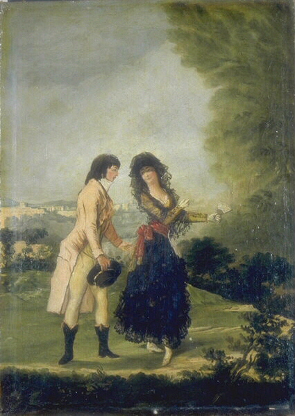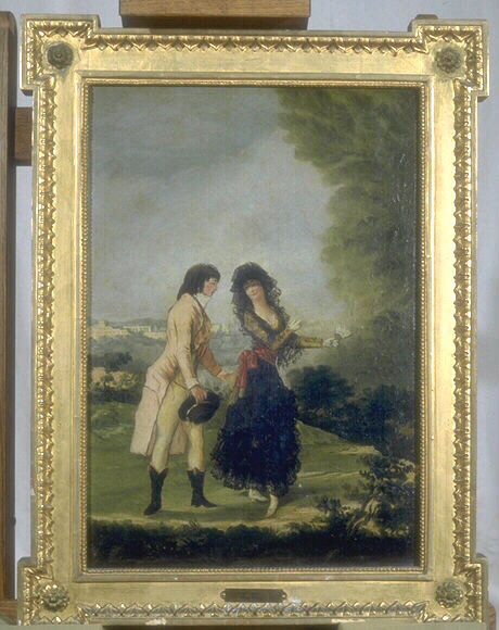 Copie du tableau intitulé "Le colloque parfait" (autrefois dit "Goya et la Duchesse d'Albe", 1793-1797, de la coll. du Marquis de la Romana, Madrid Vers 1793-1797) ; voir aussi : "Le couple élégant" tableau du Musée d'Agen (58.20.151) , "Le couple élégant", toile du Musée d'Agen (58.19.46)