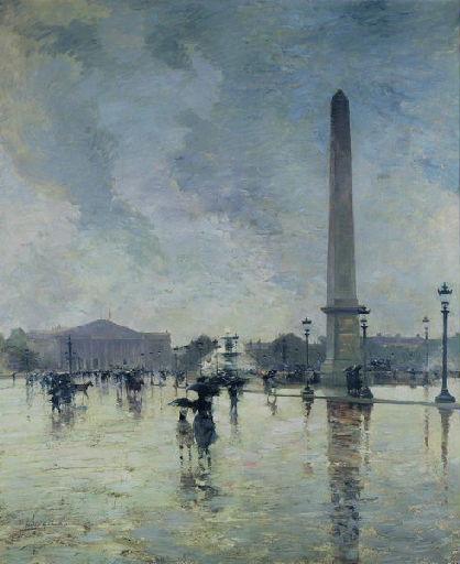 paysage (Paris, cadre urbain, place, pluie, obélisque, pluie)