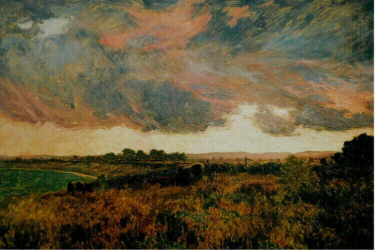 paysage (Normandie, orage, ciel, vache, colline, lande, feuillu, mer, nuage)