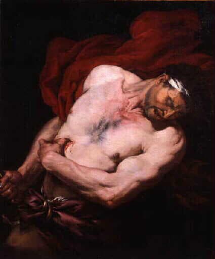 Le musée du Louvre conserve un tableau de Langetti sur le même thème (RF 1976-5)