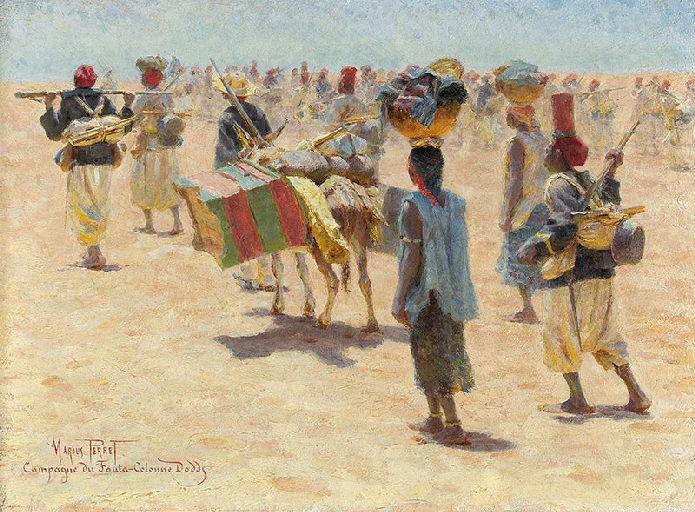 signé et annoté en bas à gauche : Marius Perret Campagne de Fouta Colonne Dodds