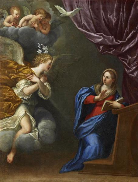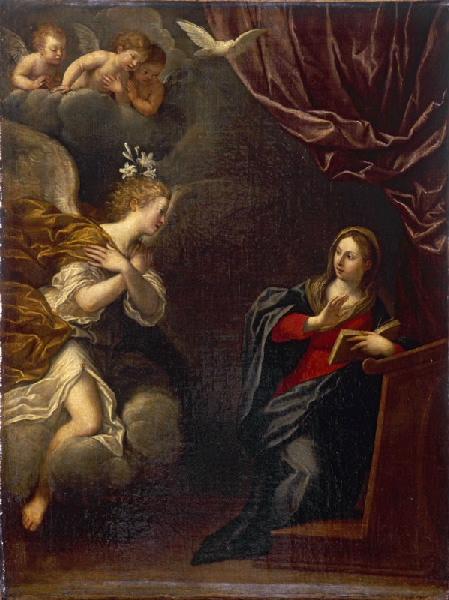 Le tableau est typique des petits formats de dévotion, aux couleurs claires et au fini précieux, dans lesquels l'artiste excellait. Il provient des collections de Louis XIV, qui l'avait acheté la même année qu'un autre tableau de l'artiste de même sujet, mais sur cuivre : le roi appréciait en effet particulièrement la peinture bolonaise. Il semble que la toile de Dijon soit postérieure au cuivre, qui date des environs de 1620. Albani a représenté le moment où la Vierge est effrayée par l'apparition de l'Ange, avec un geste de surprise. L'artiste n'a, cependant, pas hésité à agrémenter sa toile de quelques anges curieux et facétieux dans les nuages : même support de dévotion, le tableau restait aussi une oeuvre de délectation. (Notice de Matthieu Gilles, 2013) ; Acquis par Louis XIV quelques semaines avant le cuivre de même sujet, cette toile a souvent été considérée comme plus précieuse et elle a longtemps passé pour en être le prototype. A une époque où les inventaires des peintures du musée du Louvre donnaient des évaluations marchandes pour les tableaux, elle était estimée 6000 francs sous l'Empire et 4000 francs à la Restauration, contre 2400 francs puis 2000 francs pour le cuivre : ces valeurs décroissantes reflètent probablement les jugements contrastés qui furent émis au début du XIXe siècle sur ces deux tableaux, et qui préludaient à leur relégation progressive au rang d'oeuvres 'secondaires'. Une connaissance plus fine de la chronologie de l'oeuvre de l'Albane permet désormais d'inverser cette relation : si le cuivre paraît bien avoir été peint vers 1620, il précéderait la toile que sa facture plus détaillée, le modelé plus rond, et les draperies aux plis plus aigus invitent à considérer comme postérieur. (Notice de Stéphane Loire extraite de 'L'Albane 1578-1660', Exposition-dossier du département des Peintures, Paris : Musée du Louvre, 20 septembre 2000 - 8 janvier 2001) ; en rapport avec : Albani, L'Annonciation, Paris, Albani, L'Annonciation, Bologne, Albani, L'Annonciation, Cherbourg, Houdrys, L'Annonciation, Bordeaux
