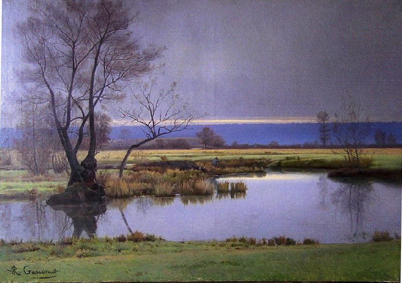 signature, en bas à gauche : les initiales des prénoms sont mêlées : PA Garcement ; inscription concernant la représentation, au revers : bord latéral gauche : Haut de Varzy