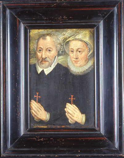 portrait collectif (couple, homme, femme, à mi-corps, prière, main : joint)