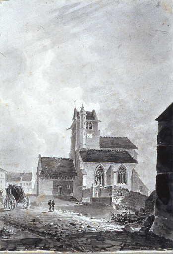 vue d'architecture (Couches, village, église)