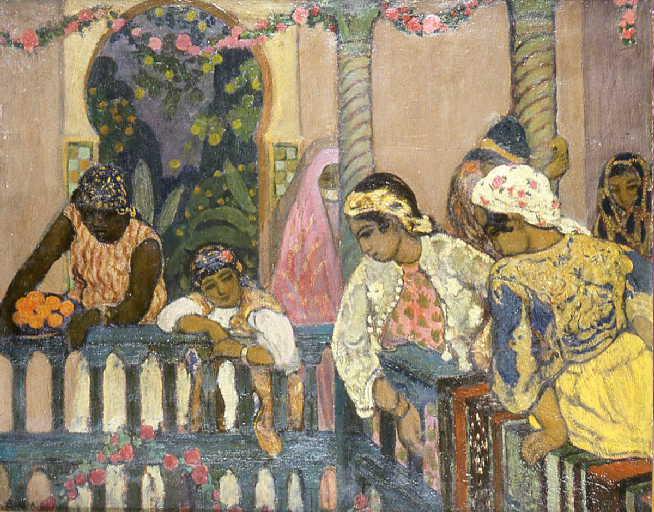 Etude pour le Salon de la Nationale des Beaux-Arts de 1912 ; en rapport avec : A. Suréda, Jeune mauresque tenant une colonnette, A. Suréda, Fillette d'Alger appuyée au balcon, A. Suréda, Jeune mauresque et servante noire