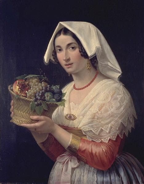 Portrait d'une paysanne romaine portant une corbeille de fruits