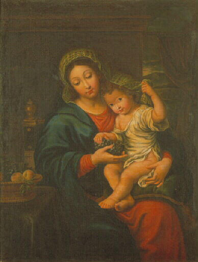 figure biblique (Vierge à l'Enfant, Enfant Jésus, fruit, raisin)