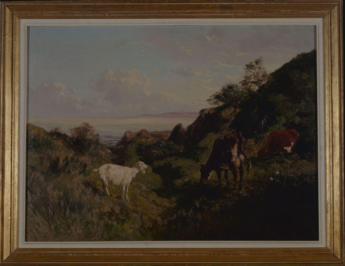 paysage (chèvre ; vache ; bord de mer ; rocher ; pré ; prairie ; Saint-Brieuc)