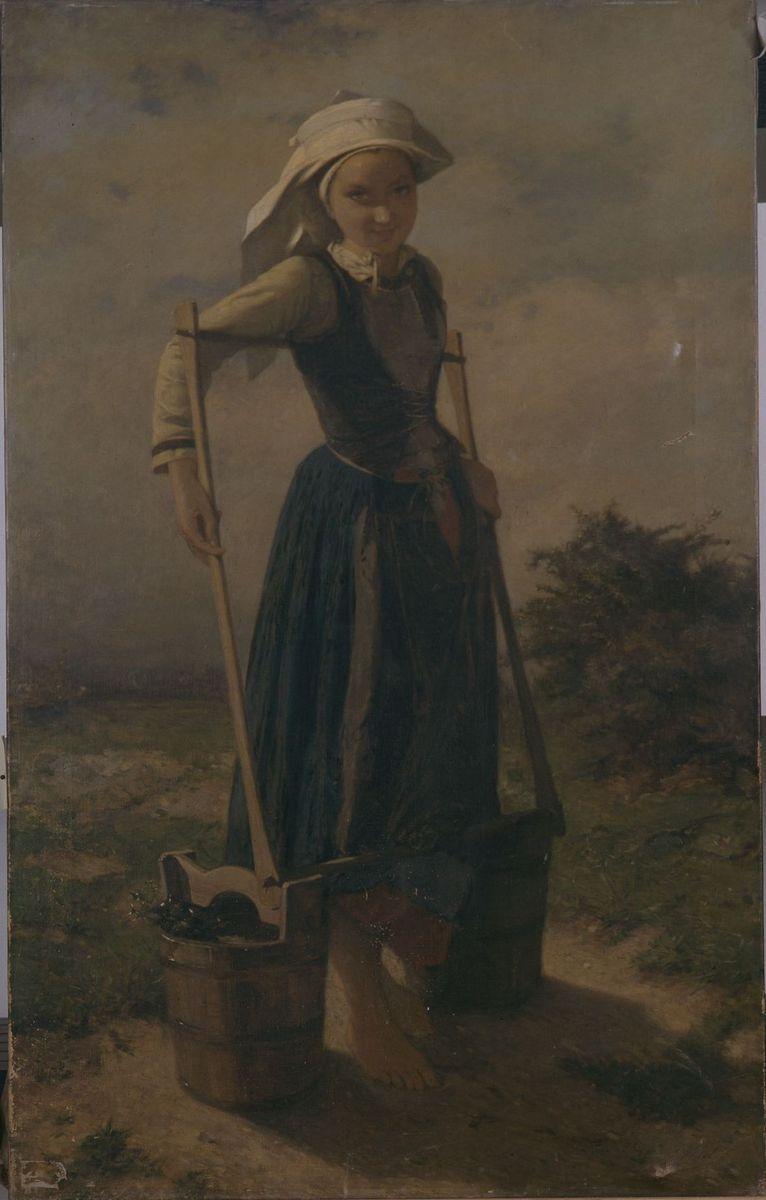 portrait (jeune femme ; paysanne ; pied ; seau ; coiffe)