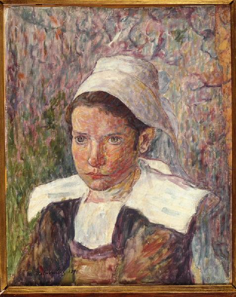 portrait d'inconnu (Pont-Aven, femme, costume traditionnel, Breton, coiffe, col, de trois-quarts)