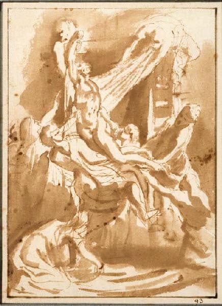 Une étude préparatoire pour la Descente de Croix commandée à Rubens par les Capucins de Lille pour le Maître-Autel de leur chapelle, exécuté en 1617, actuellement au musée des Beaux-Arts de Lille