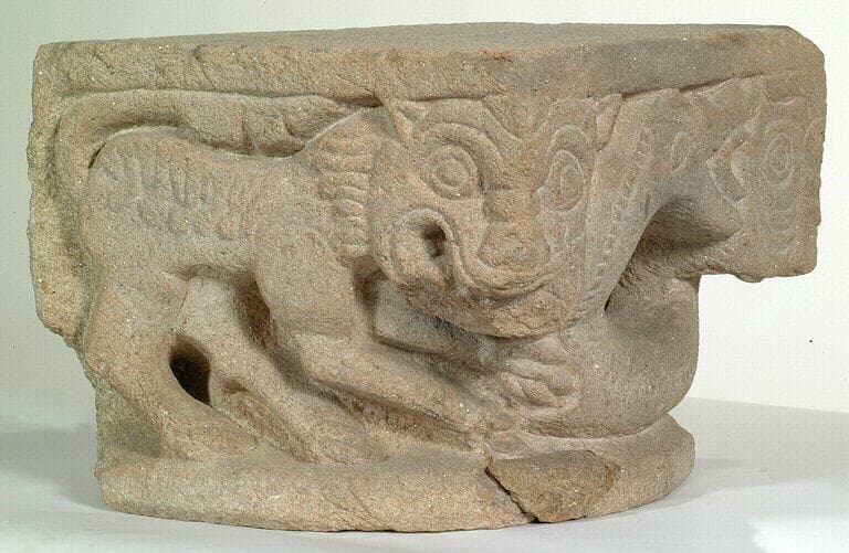 Chapiteau envoyé par le service d'architecture de Rennes. ' [...] trouvé en novembre 1925 dans l'ancienne douve comblée de la deuxième enceinte de la ville, au Sud-Est du futur jardin de Saint-Georges, sur l'emplacement de l'annexe de la faculté des Sciences.Provient très vraisemblablement de l'église abbatiale Saint-Georges' Minutes d'inventaire de 1925 ; 949.3407 Photographie Chapiteau de l'abbaye Saint-Georges