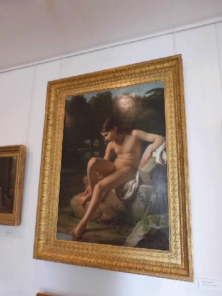 Drolling choisi un modèle juvénile dont les formes de l'adolescent sont ambiguës; sa posture et sa disposition dans un paysage sont dans l'air du temps, de même que le dessin linéaire et moelleux des contours. Drolling s'inspire manifestement du 'Tireur d'épine', célèbre bronze antique qu'il a pu voir au musée du Capitole, à Rome, où il est conservé depuis le milieu du XVe siècle. La présence du tableau dans les collections de Vinchon témoigne des liens d'amitié qui, tout au long de leurs carrières respectives, unirent les deux artistes.