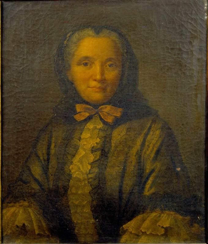Madame Taschereau de Lignières est la tante de Pierre-Antoine Claude Papion. Son costume, le coqueluchon qui couvre ses cheveux, le manteau d'intérieur à garniture de dentelle et les manches à engageantes permettent de dater ce portrait entre 1750 et 1760.