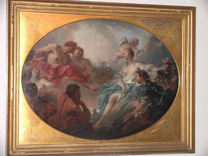 scène mythologique (allégorie : présentation, apothéose, Vénus, Enée, Diane, Jupiter, Vulcain, Junon, Bacchus, Eros, foudre, nuage, marteau, arme, aigle, colombe, putto)