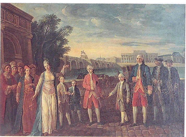 portrait collectif (Chénier Louis, famille, homme, femme, enfant, Paris, pont)