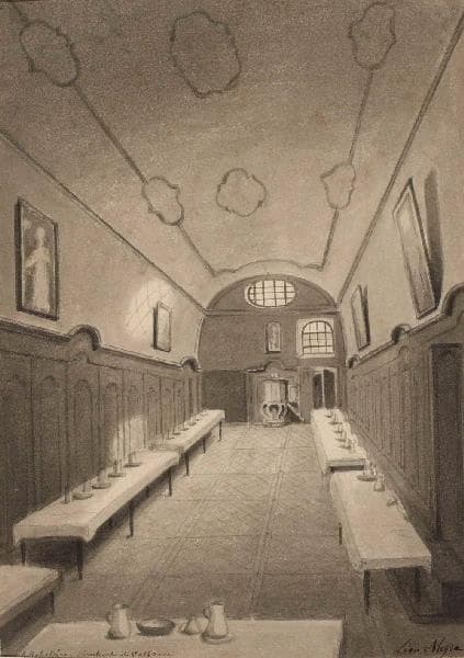 titre, en bas et gauche : Le Refectoire - chartreuse de Valbonne ; signature, en bas à droite : Léon Alegre