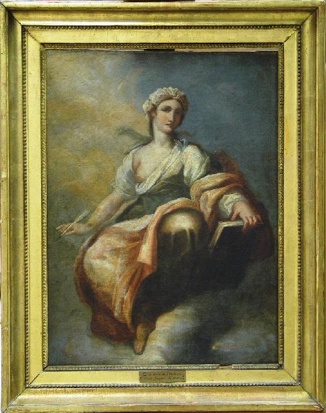 ancien cartel, sur le cadre en bas : Clio, muse de l'Histoire/ Ecole française, fin XVIIIe S * ; trace d'une ancienne étiquette, au dos en haut sur le cadre : x 104