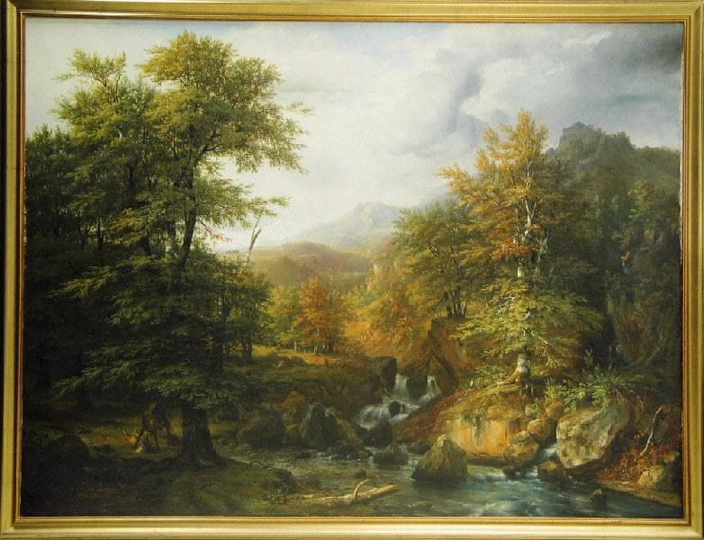 Loup dévorant une brebis , Paysage des Pyrénées