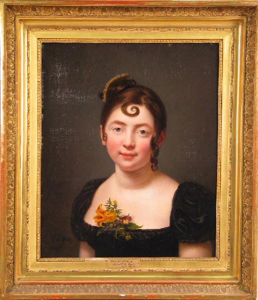 signé et daté, en bas à gauche : Pne Auzou / 1807 ; ancien cartel, sur le cadre en bas : Pauline AUZOU / Portrait de Dame / Daté 1807 ; inscription, au dos en bas : MR.Y.21
