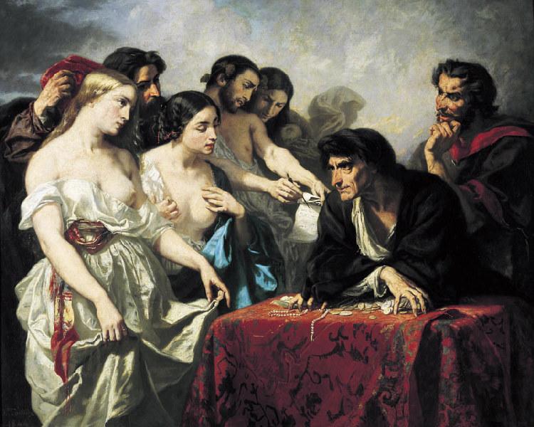 scène (moralisant, avarice, homme, monnaie, or, diable, femme, demande)