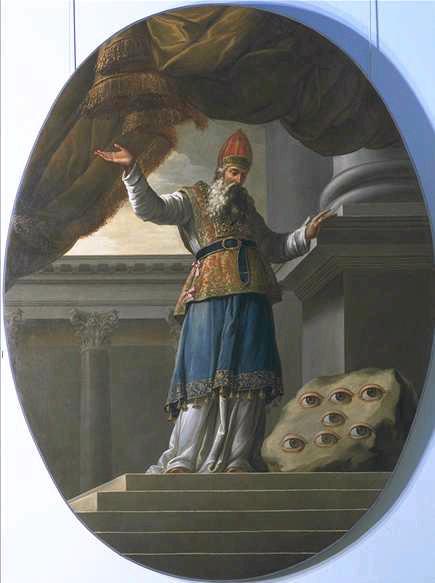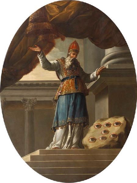 scène biblique (saint Zacharie, vision, rocher : oeil)